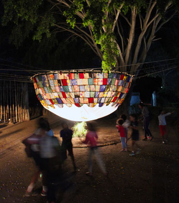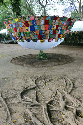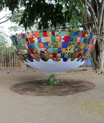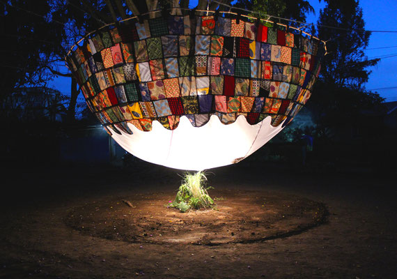 L’œuvre est constituée d’un patchwork de tissus traditionnels tanzaniens (massaï shuka, kangas, kitengés...) cousus sur une forme en demi-sphère en coton blanc. Cette forme évoque le mont Kilimandjaro à l’envers.