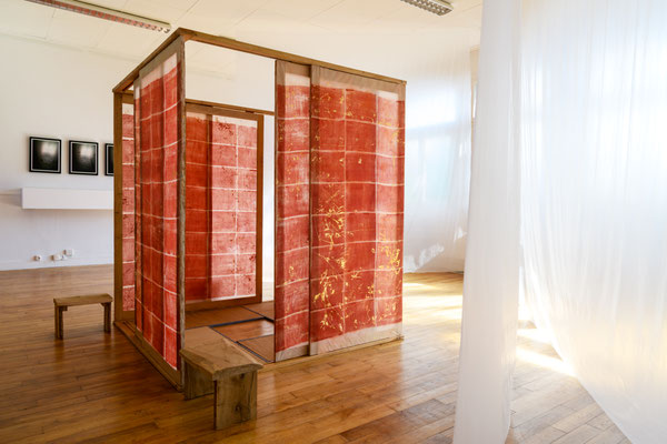 par les variations de lumières des jours et des saisons, perméable aux pulsations du jardin autour. Des espaces placés presque sous silence, quasi immobiles.