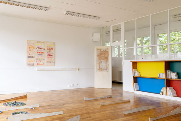 Nous souhaitons donc faire pleinement œuvre avec ces anciennes salles de classe, ce qui y demeure présent, par manques, par périphrases.