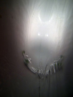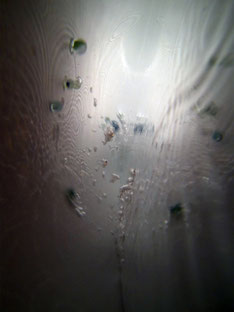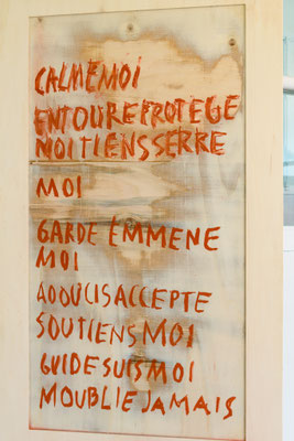 garde son aspect actuel feutré, des signes minuscules, à peine visibles au premier regard, disposés comme des indices oubliés, à regarder de très près, à caresser ; comme dans la pénombre