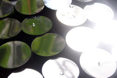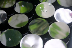 11000 miroirs, 11000 bouteilles en verre, eau.