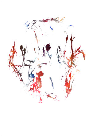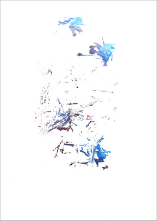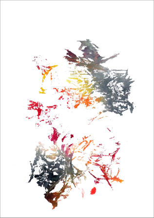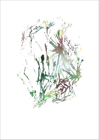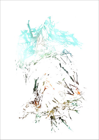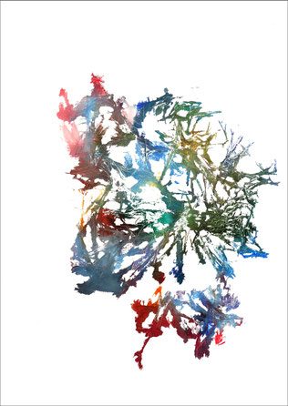 Depuis 2014, la série "Aspirations d'eau" explore la puissance créative et le rôle fondamental de l’eau en tant qu’élément central du vivant. Ces monotypes d’encres sur papier laissent l’eau libre de ses mouvements, révélant des formes organiques inattendues, proches de réseaux naturels ou de connexions neuronales. Chaque trace, chaque motif semble témoigner de l’essence du vivant, comme si l’eau, dans sa fluidité, était capable de révéler des schémas cachés de la nature.